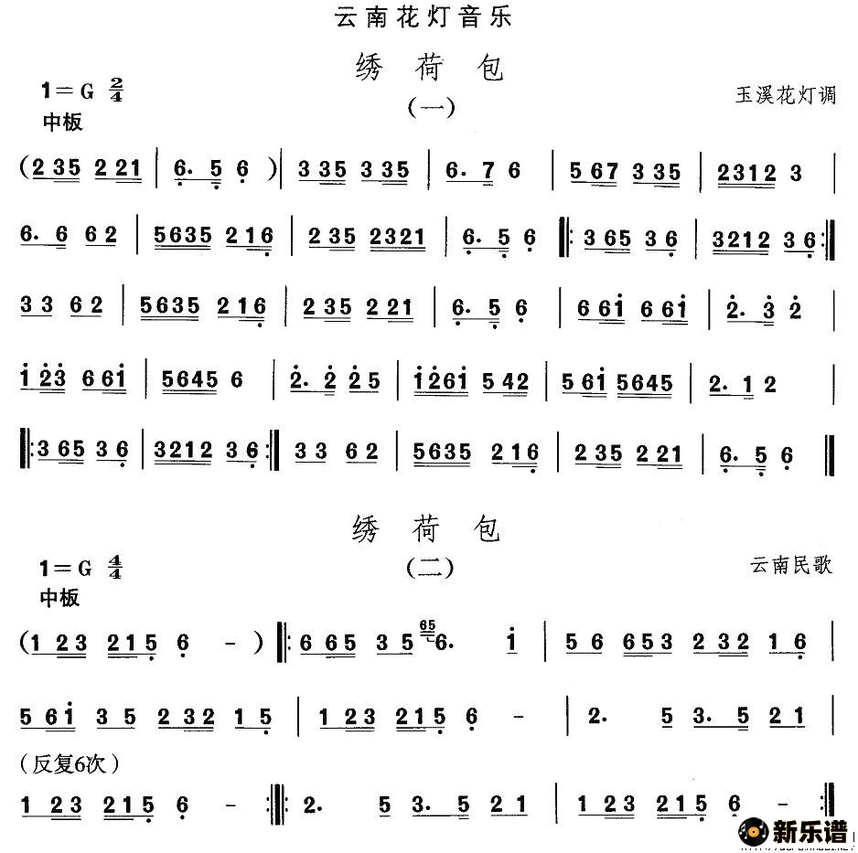 未知演唱的云南花灯:绣荷包歌词,云南花灯:绣荷包简谱.