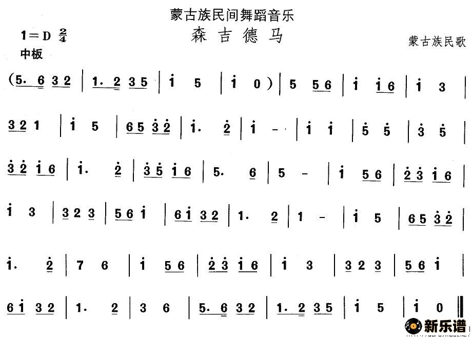 未知演唱的蒙古族舞蹈:森吉德马歌词,蒙古族舞蹈:森吉德马简谱.