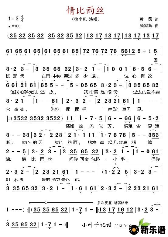 《情比雨丝》简谱 徐小凤-小叶子制谱