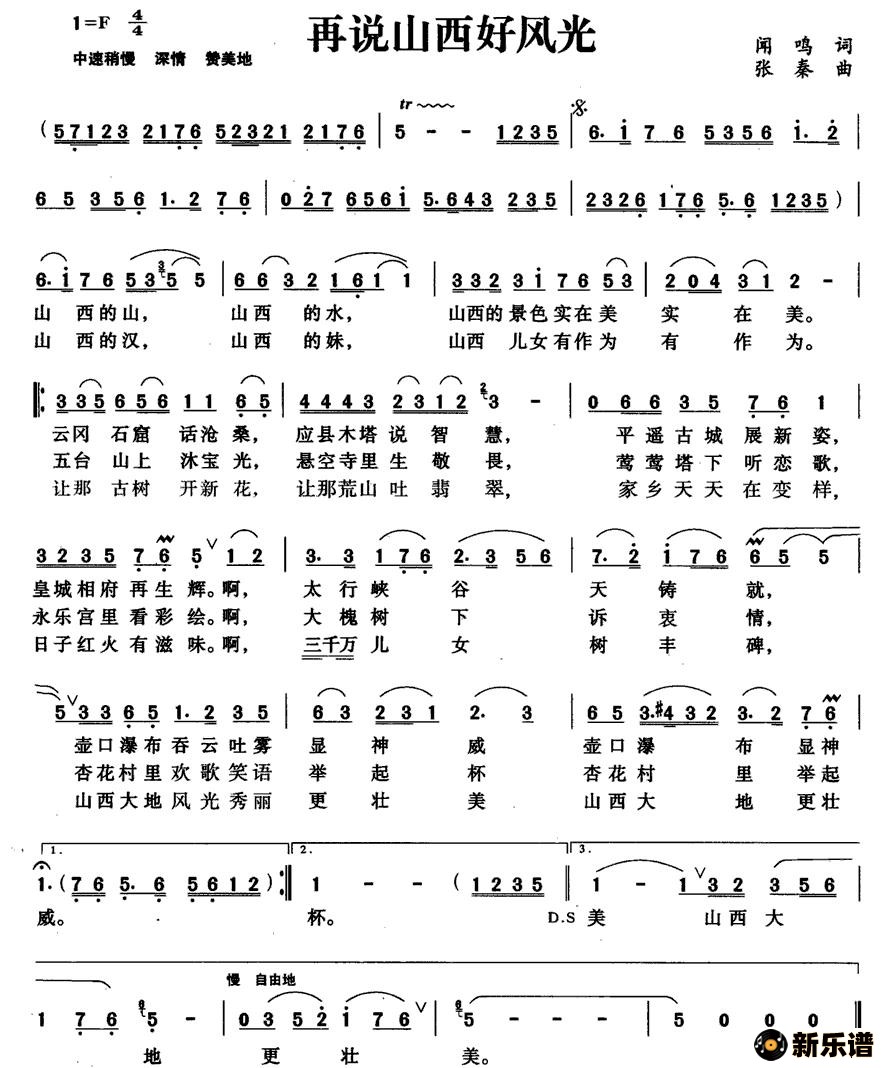 演唱的再说山西好风光歌词,再说山西好风光简谱.