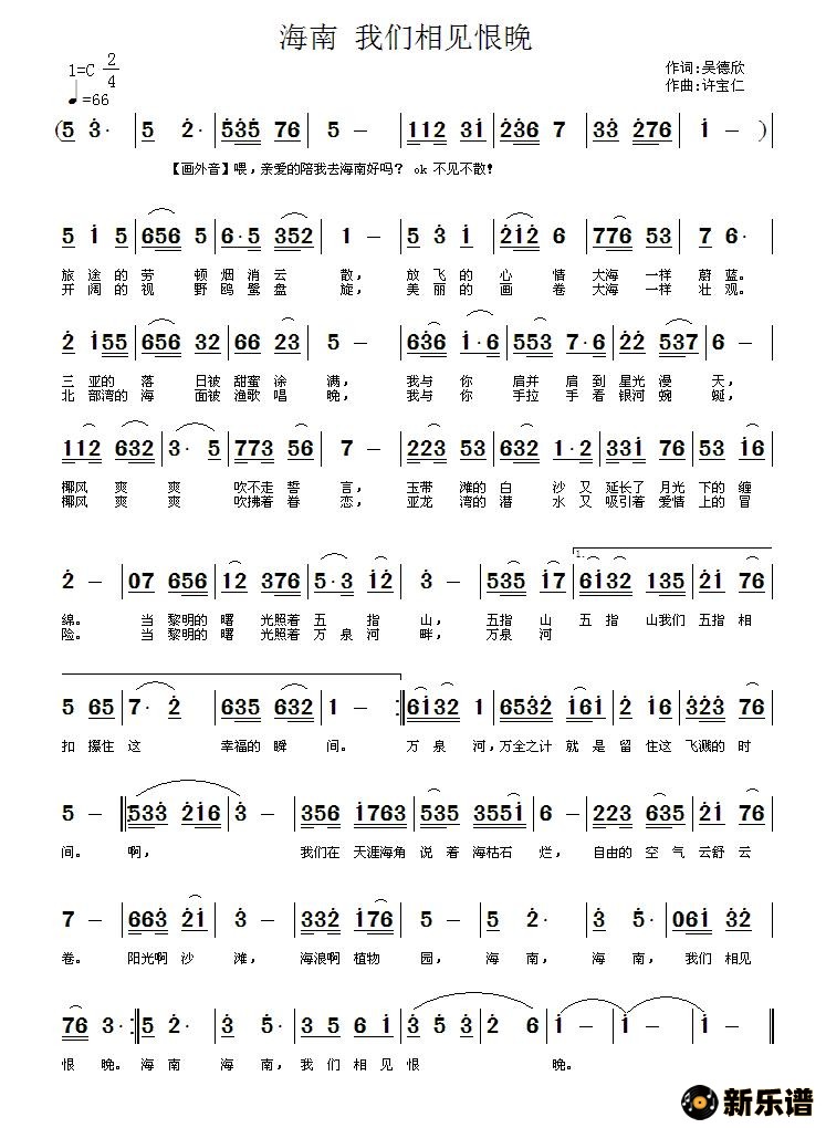 演唱的海南 我们相见恨晚歌词,海南 我们相见恨晚简谱.