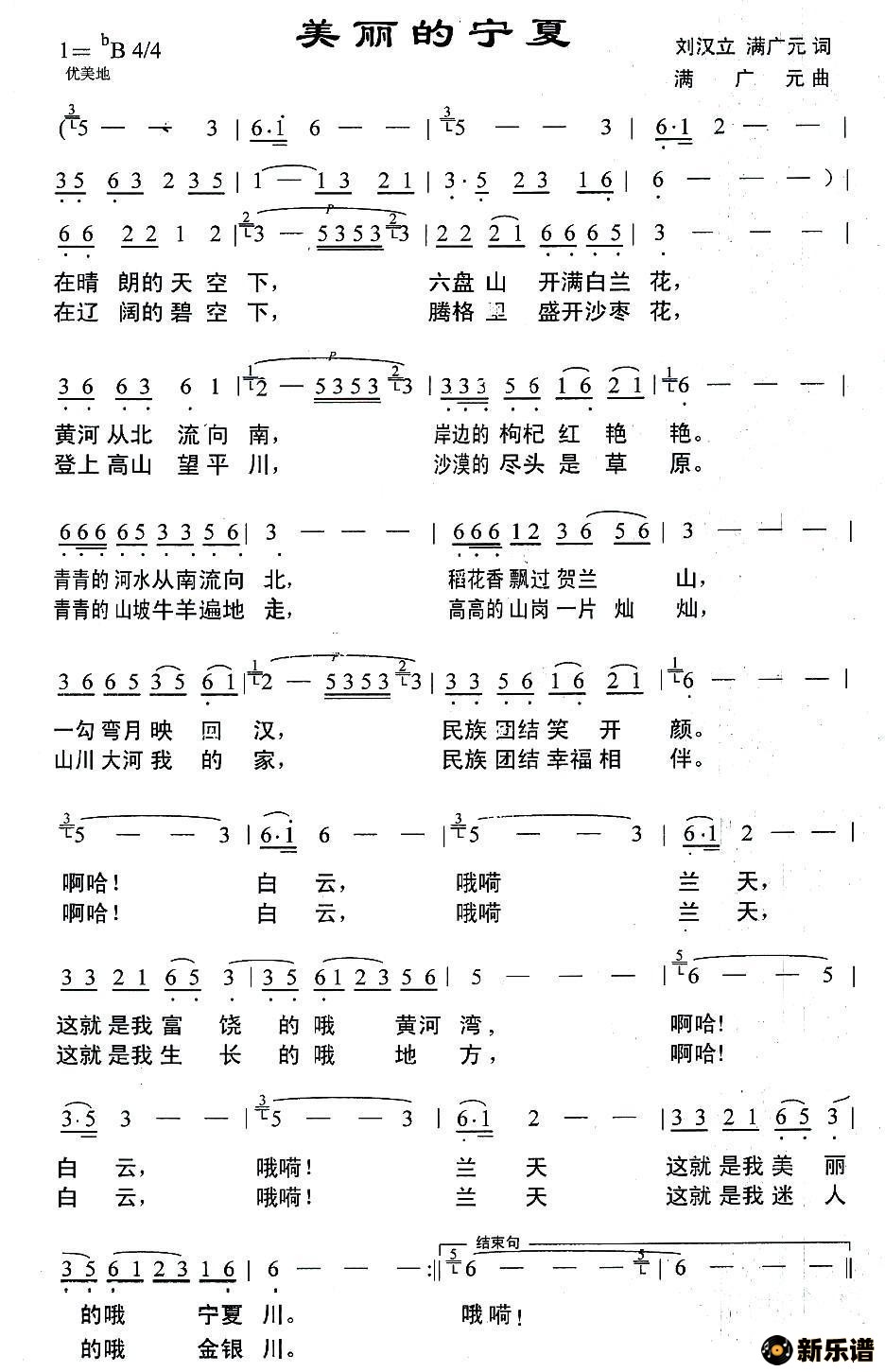 演唱的美丽的宁夏歌词,美丽的宁夏简谱.