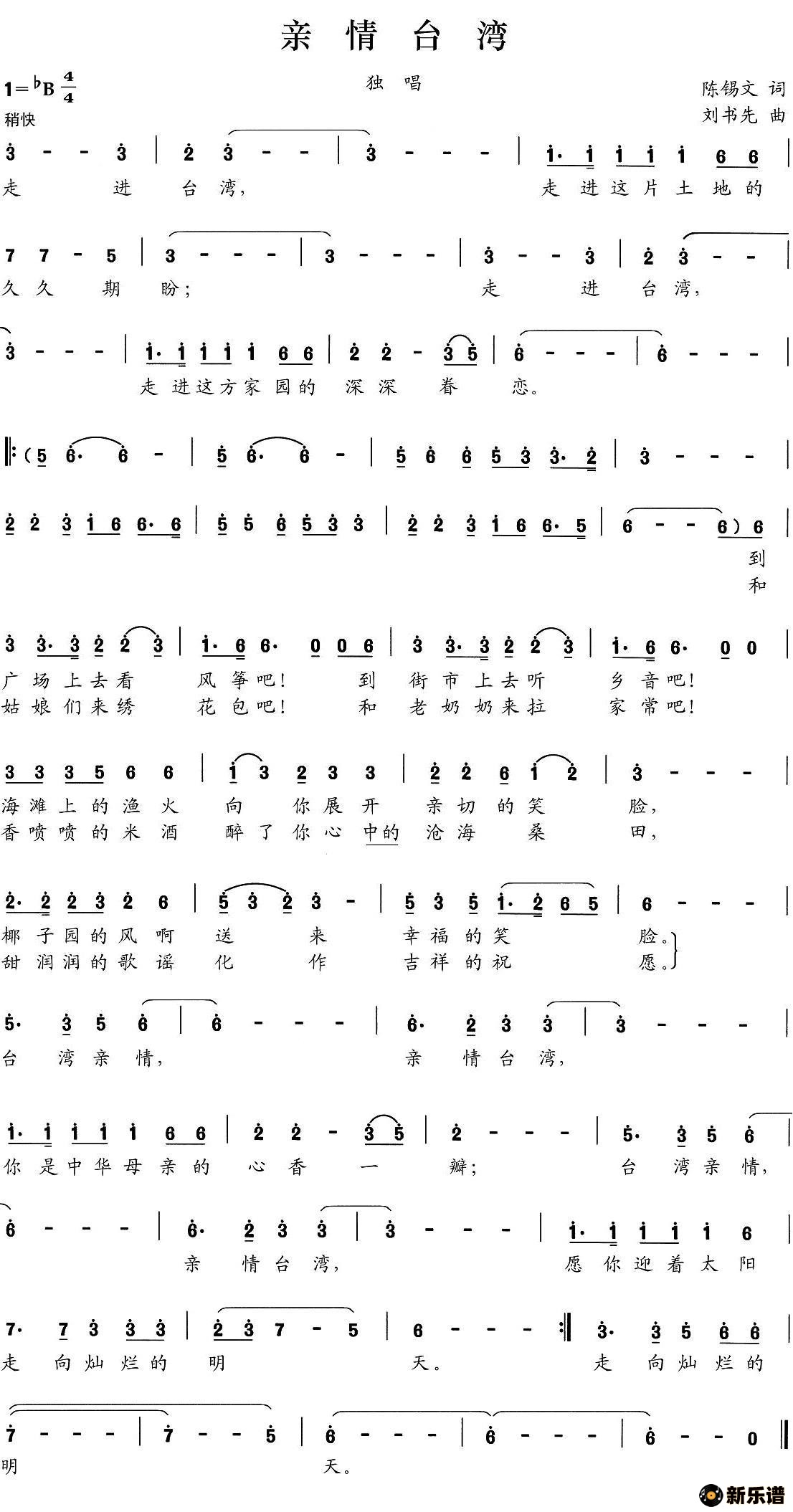 演唱的亲情台湾歌词,亲情台湾简谱.
