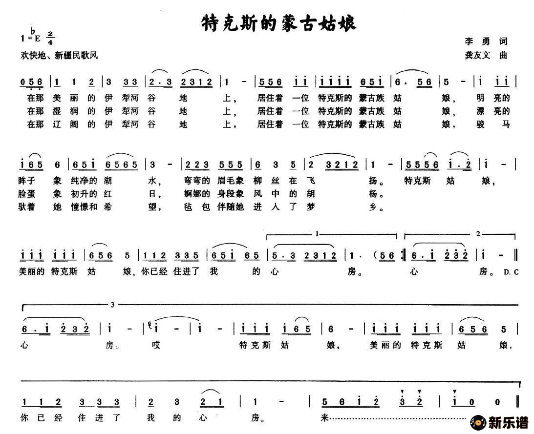 演唱的特克斯的蒙古姑娘歌词,特克斯的蒙古姑娘简谱.