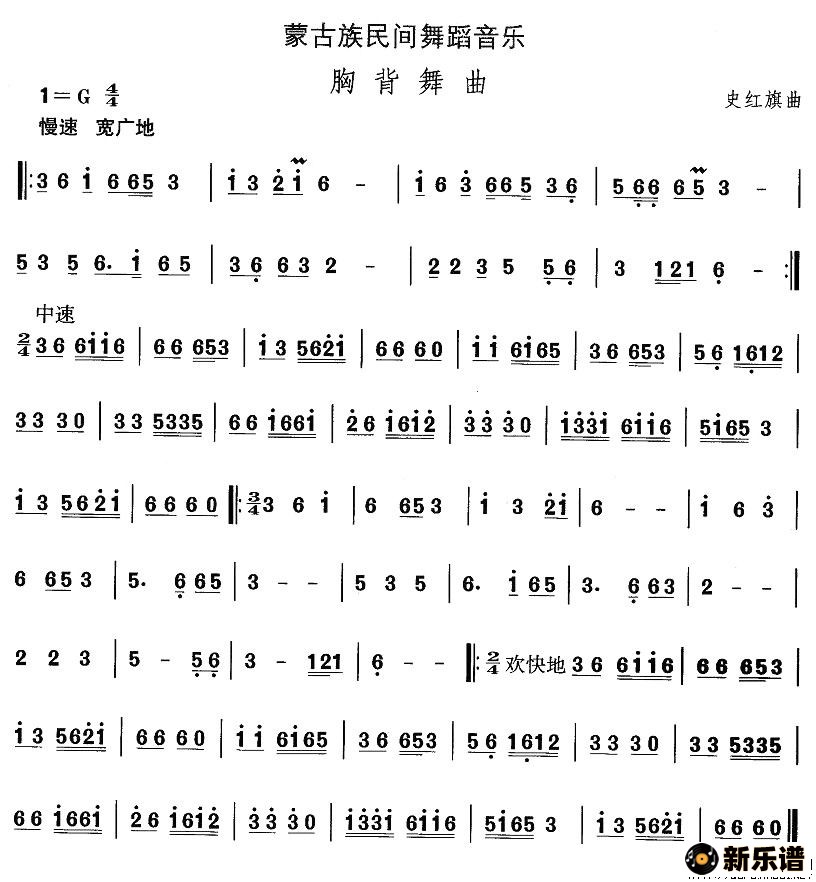 未知演唱的蒙古族舞蹈:胸背舞曲歌词,蒙古族舞蹈:胸背舞曲简谱.
