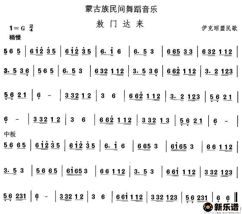 《蒙古族舞蹈:敖门达来》简谱 未知