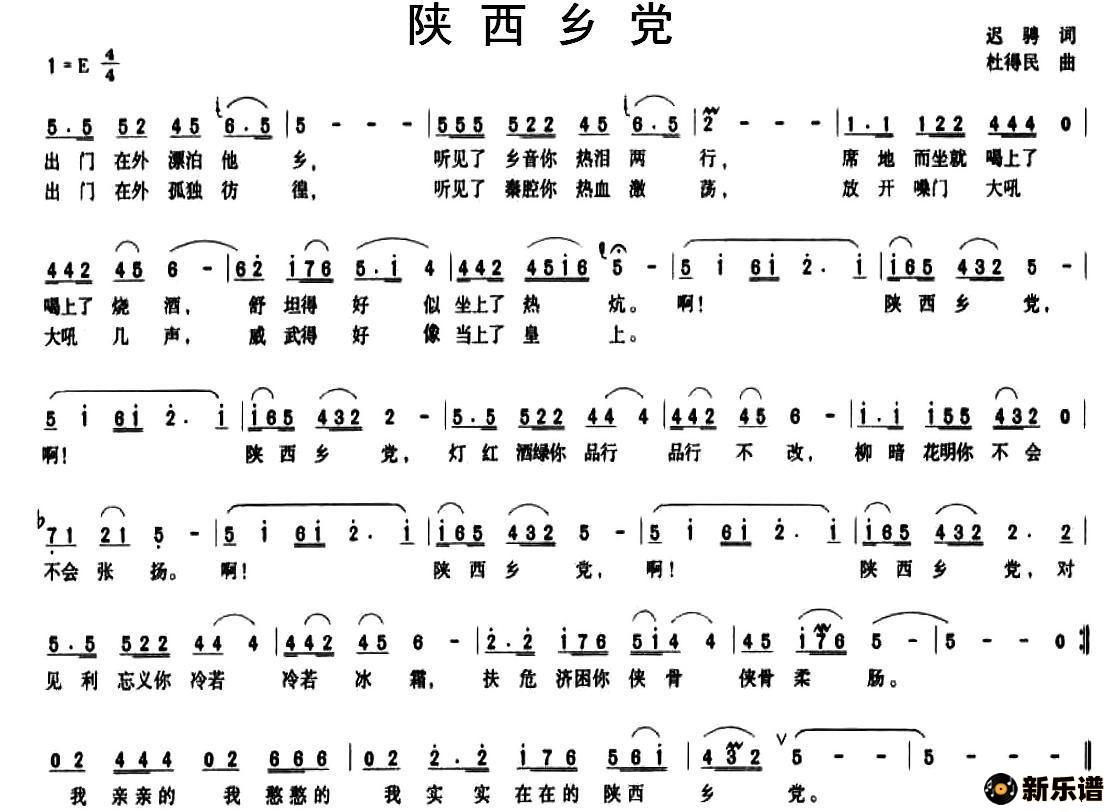 演唱的陕西乡党歌词,陕西乡党简谱.