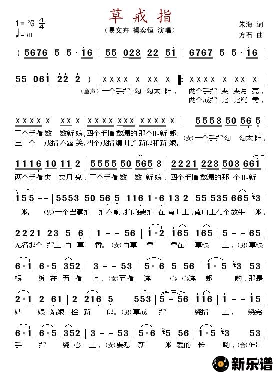 易文卉/操奕恒演唱的草戒指歌词,草戒指简谱.