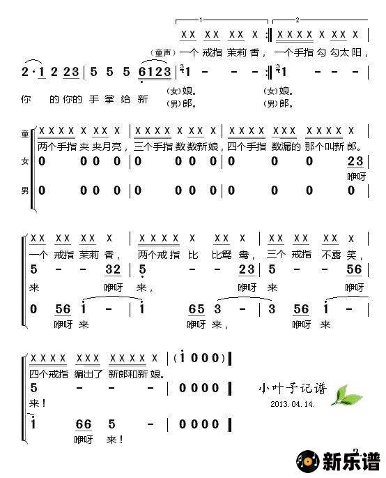 《草戒指》简谱 易文卉/操奕恒-小叶子制谱