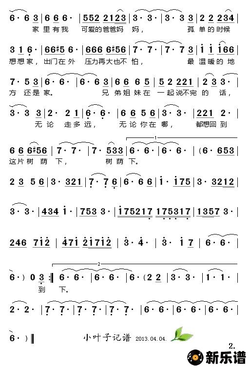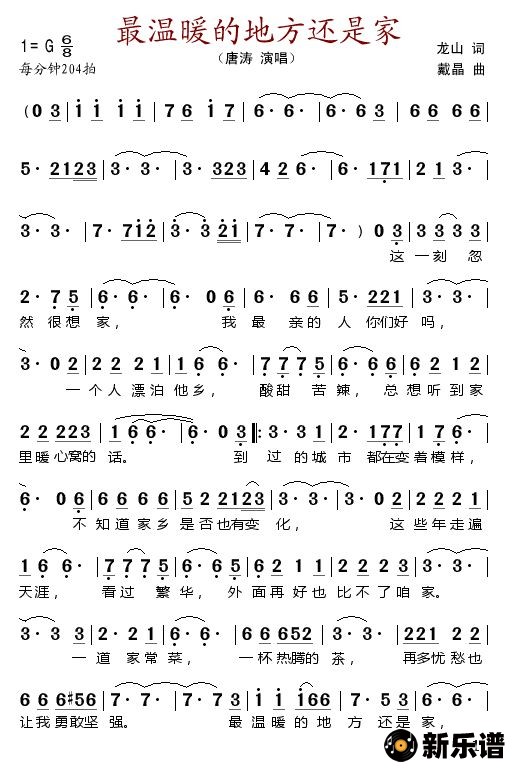 《最温暖的地方还是家》简谱 唐涛-小叶子制谱