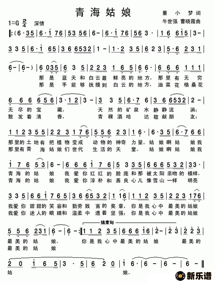 演唱的青海姑娘歌词,青海姑娘简谱.