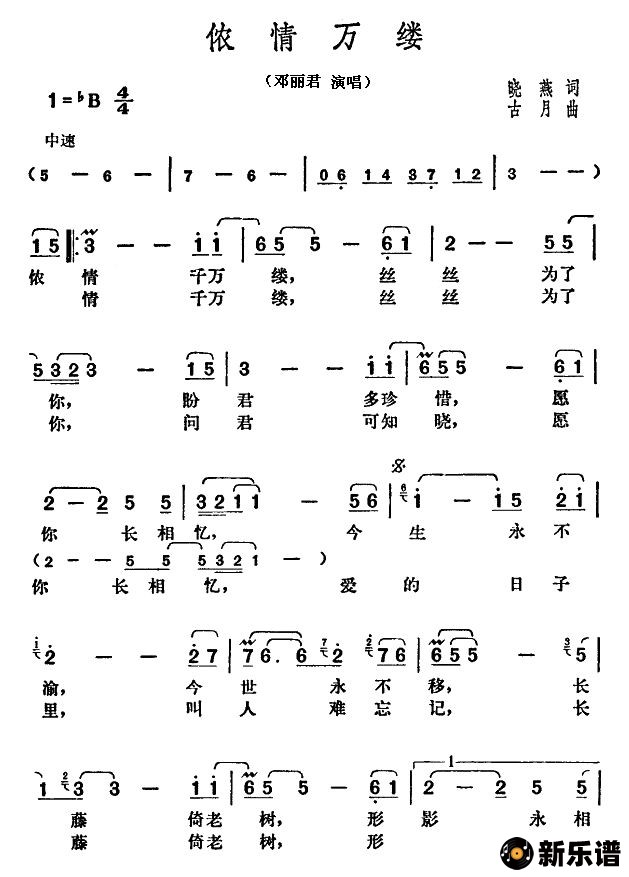 邓丽君演唱的侬情万缕歌词,侬情万缕简谱.