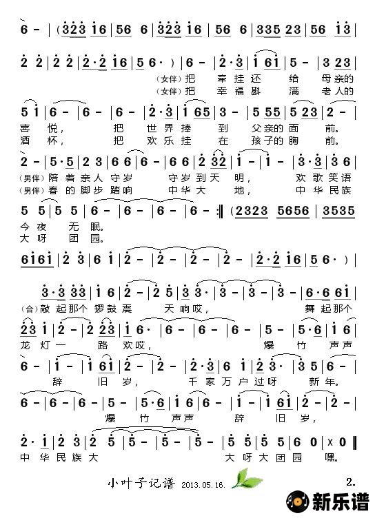 《中华民族大团圆》简谱 胡承忠/陈春茸-小叶子制谱