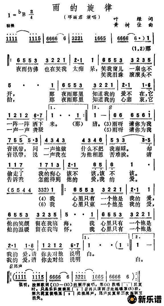 《雨的旋律》简谱 邓丽君-小叶子制谱