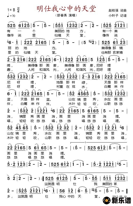 《明仕我心中的天堂》简谱 舒春秀-小叶子制谱