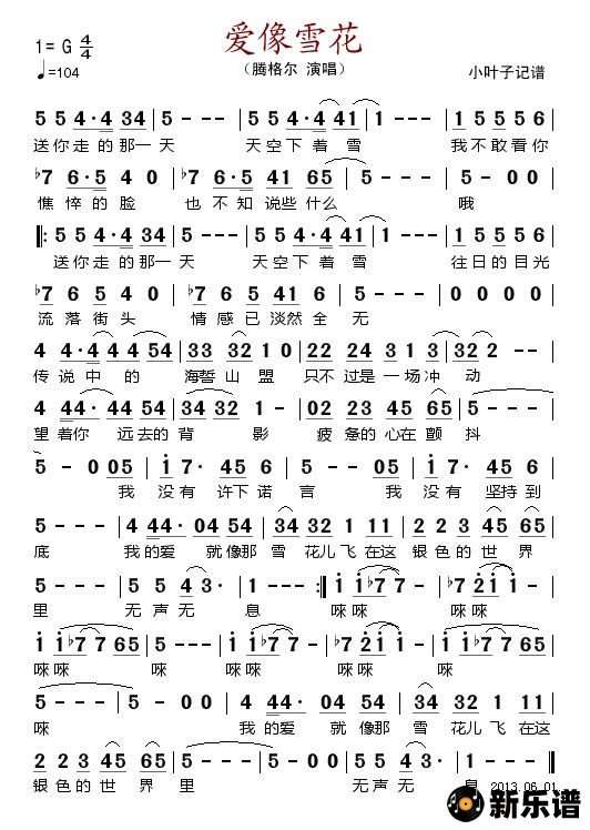 《爱像雪花》简谱 腾格尔-小叶子制谱