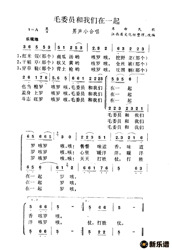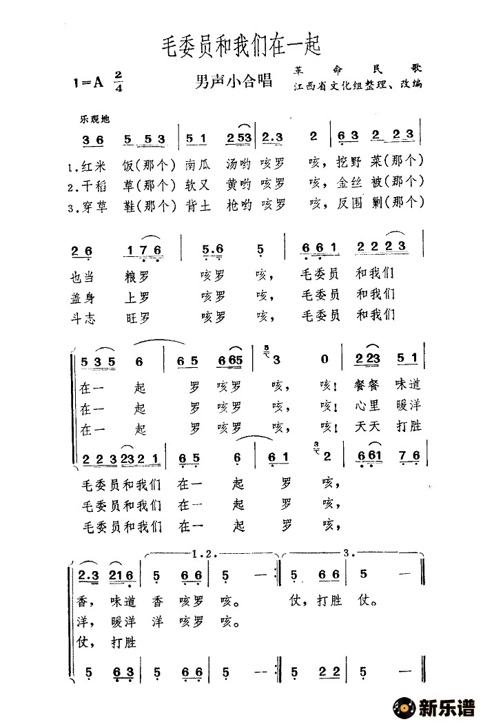 江西省歌舞团演唱的毛委员和我们在一起(男声小合唱)歌词,毛委员和我们在一起(男声小合唱)简谱.