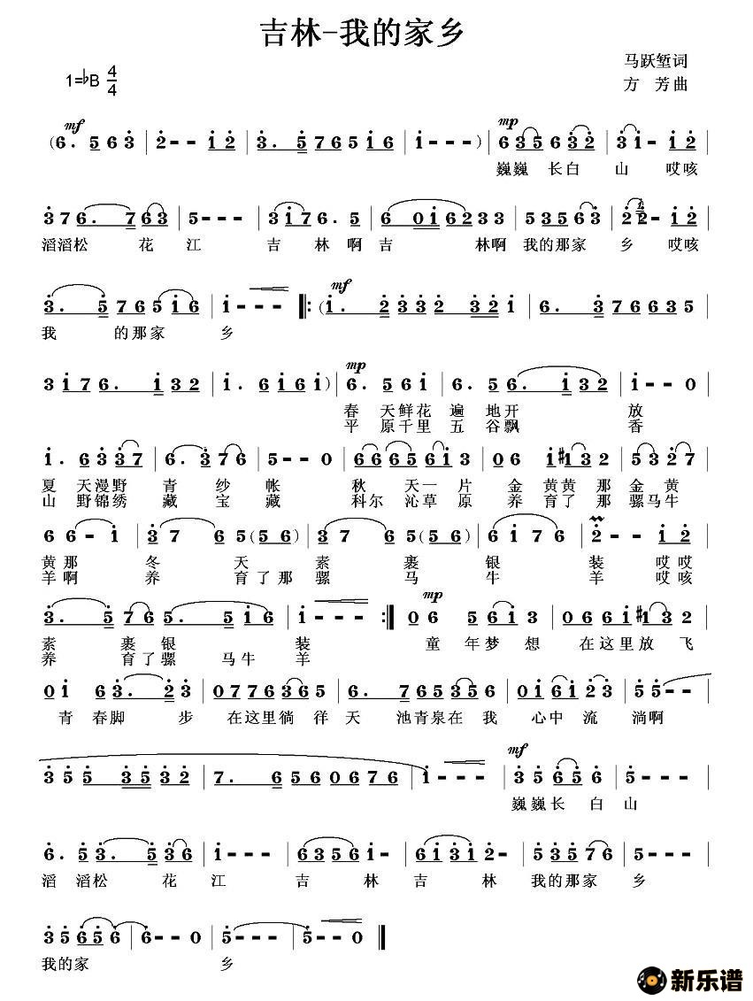 郭俊芳演唱的吉林—我的家乡歌词,吉林—我的家乡简谱.
