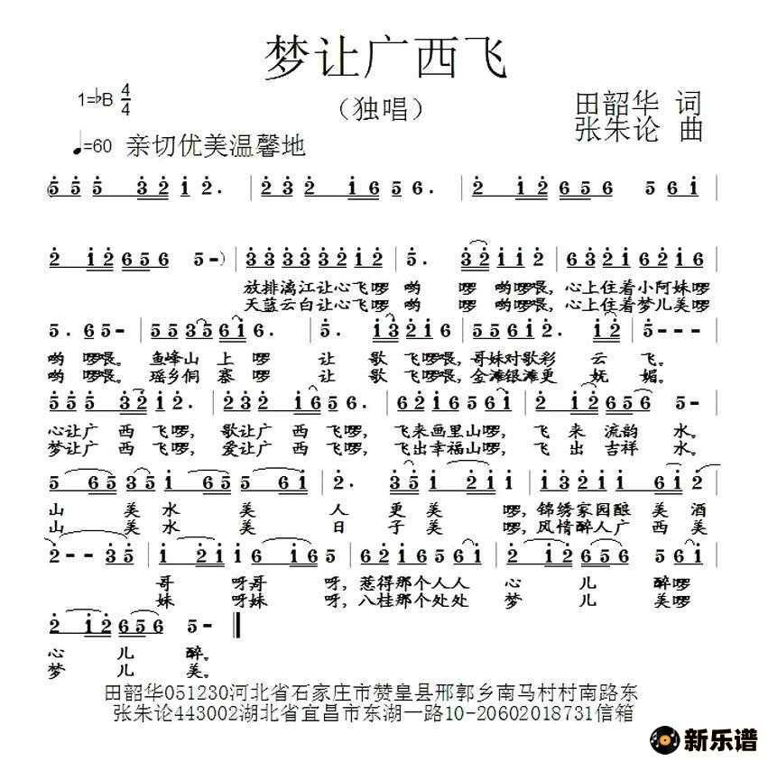 演唱的梦让广西飞歌词,梦让广西飞简谱.