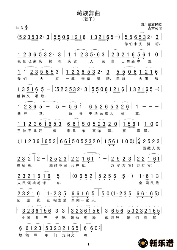 演唱的藏族舞曲(校正)歌词,藏族舞曲(校正)简谱.