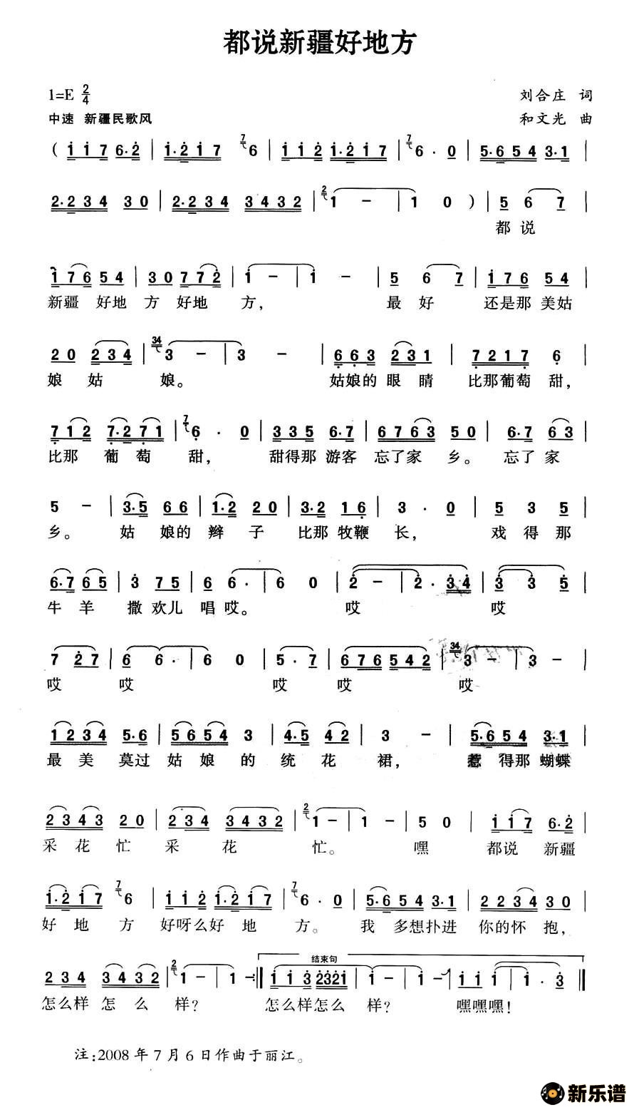 演唱的都说新疆好地方歌词,都说新疆好地方简谱.