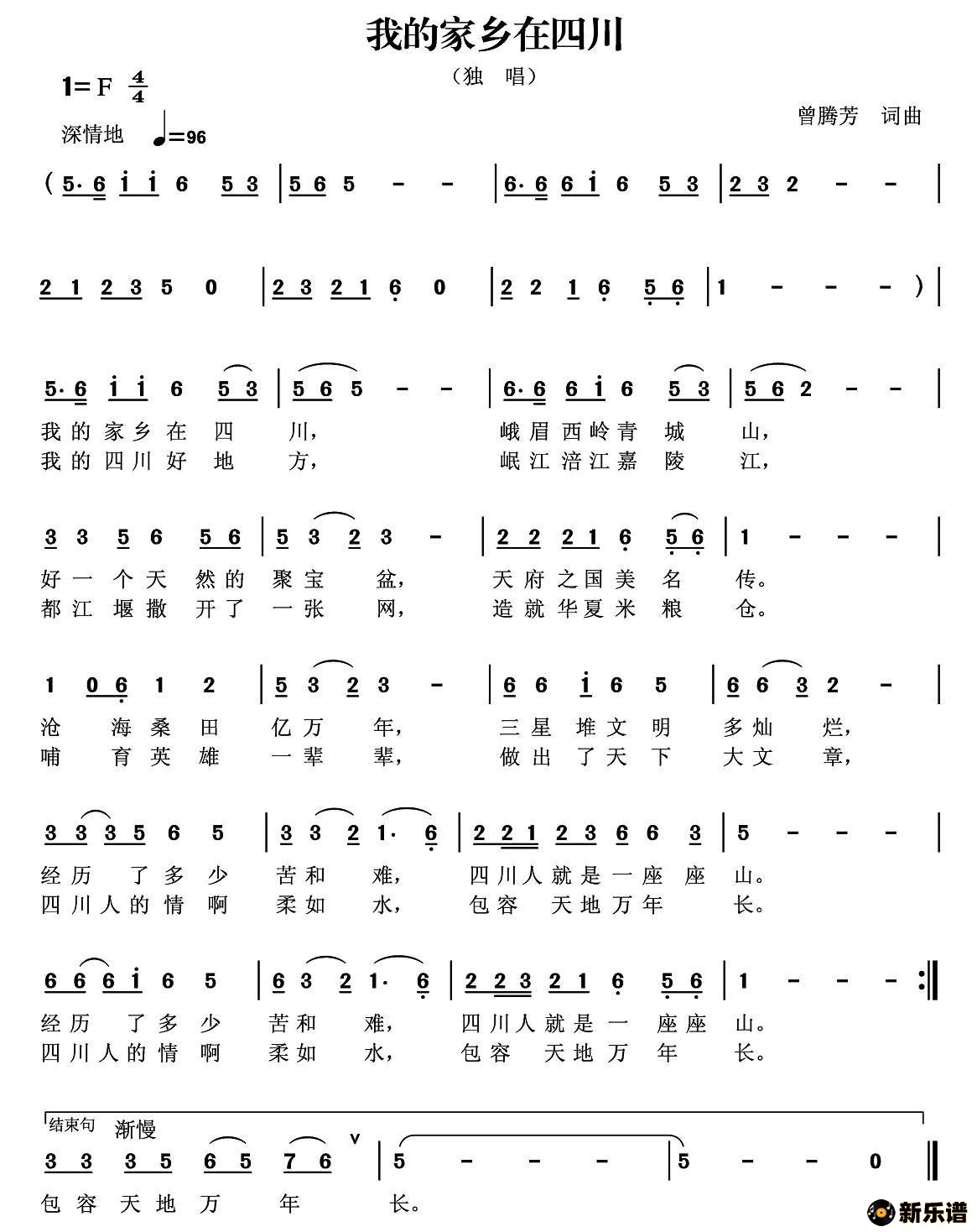 演唱的我的家乡在四川歌词,我的家乡在四川简谱.