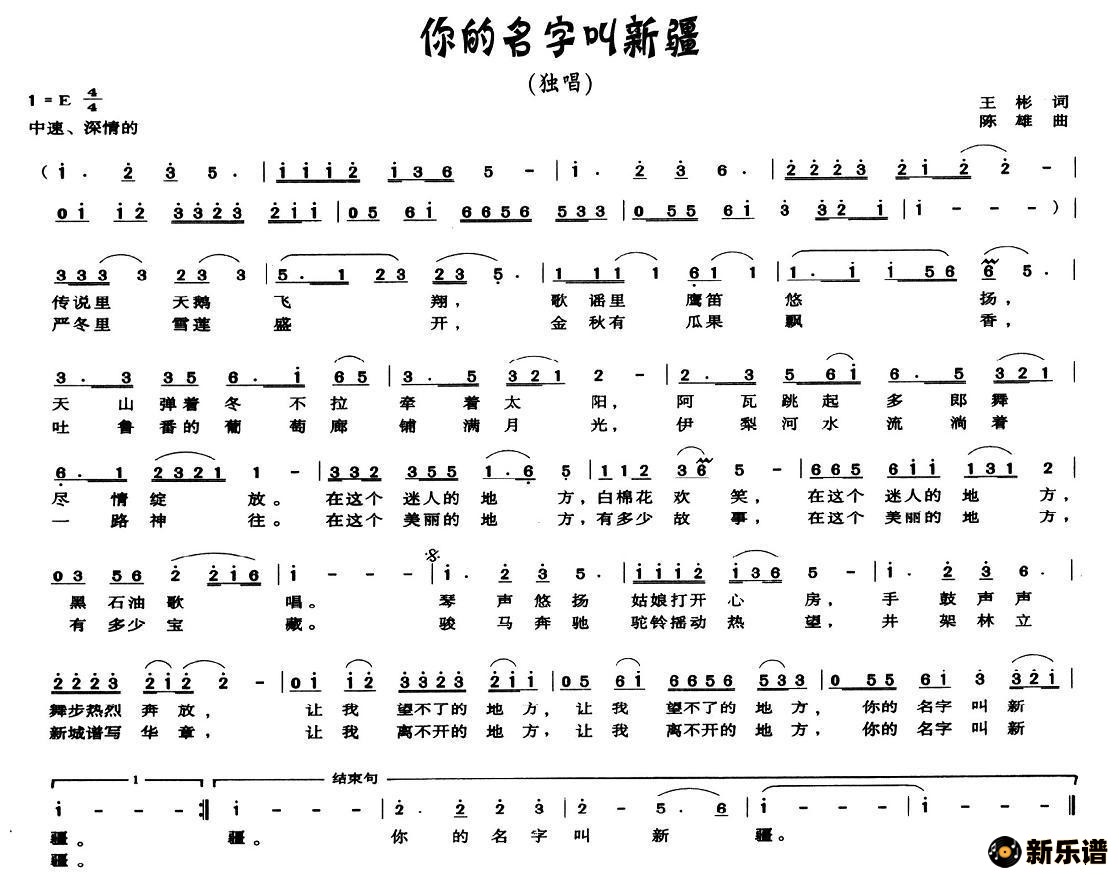 演唱的你的名字叫新疆歌词,你的名字叫新疆简谱.
