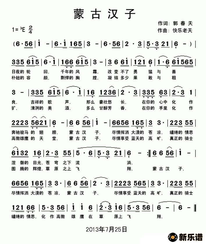 《蒙古汉子(郭春天词 快乐老天曲)》简谱 罗锡贵