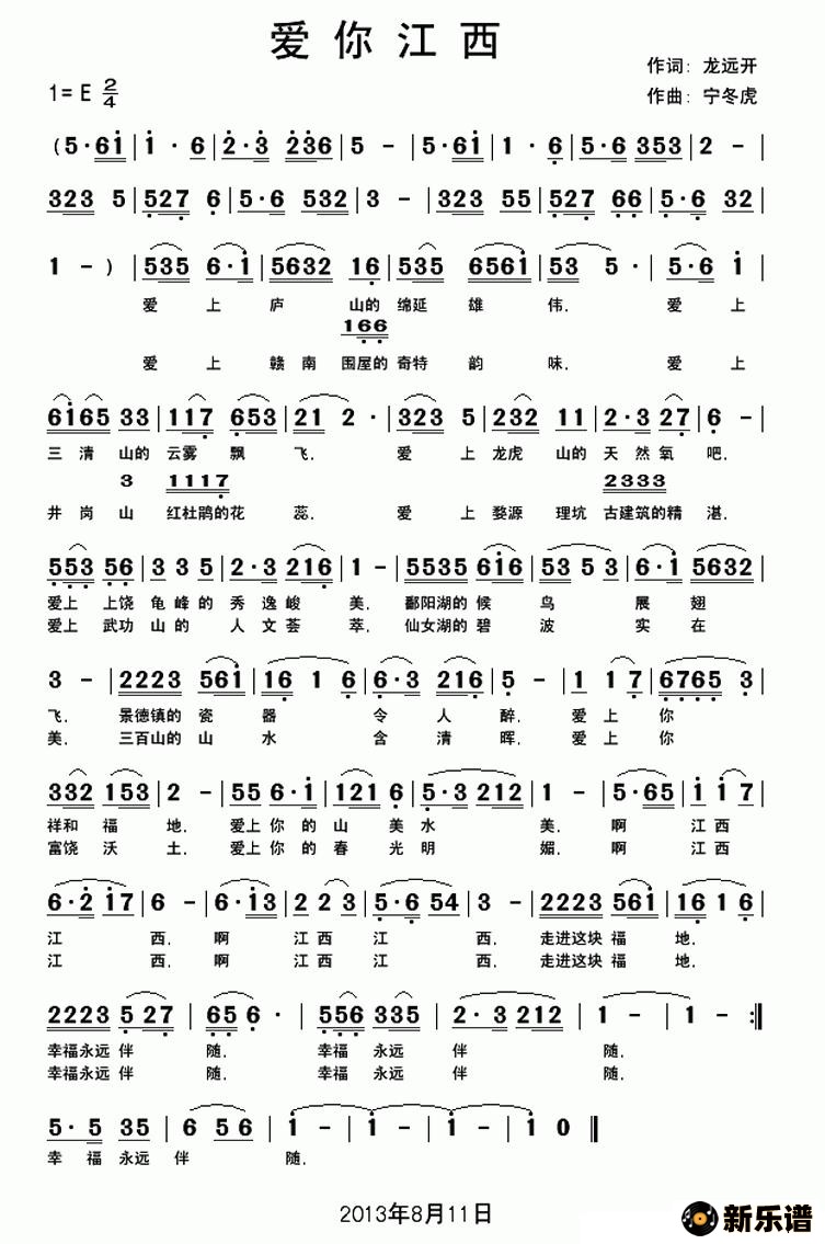 罗锡贵演唱的爱你江西歌词,爱你江西简谱.