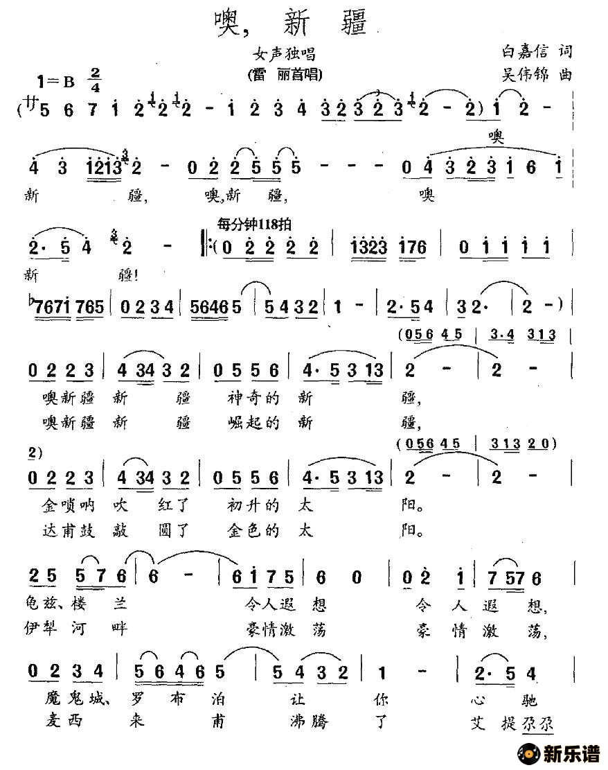 雷丽 演唱的噢,新疆歌词,噢,新疆简谱.