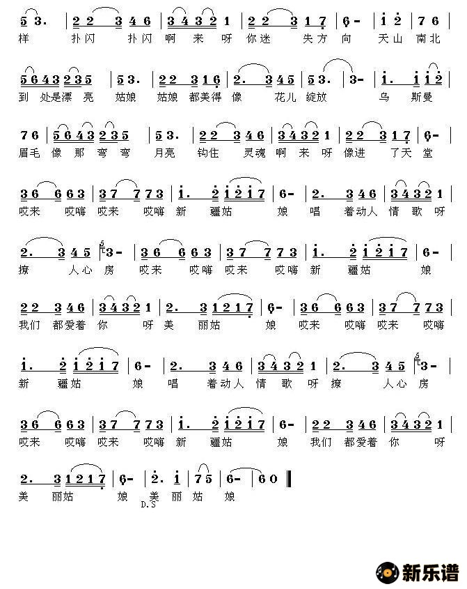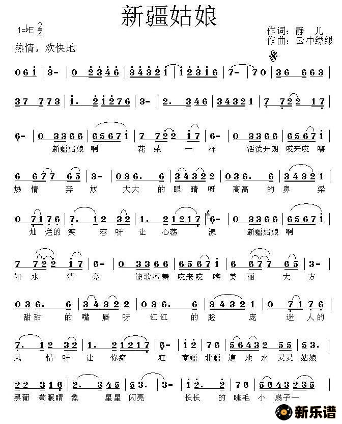 > 新疆姑娘(新疆静儿词 云中缥缈曲)简谱