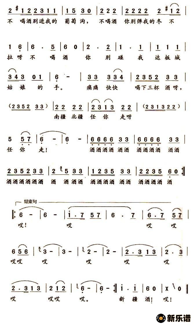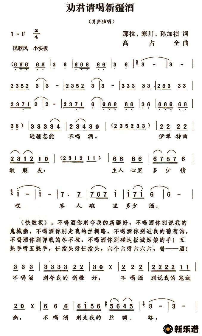 演唱的劝君请喝新疆酒歌词,劝君请喝新疆酒简谱.