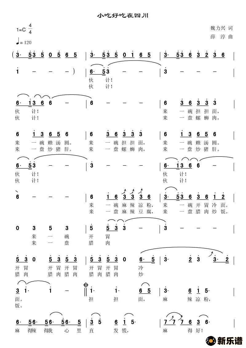 何刚 演唱的小吃好吃在四川歌词,小吃好吃在四川简谱.
