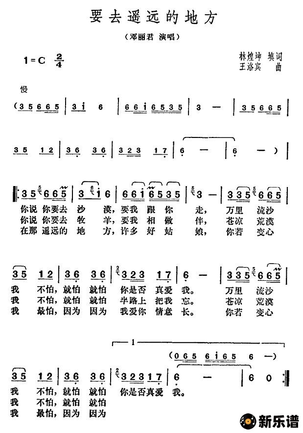 要去遥远的地方/邓丽君 相关曲谱