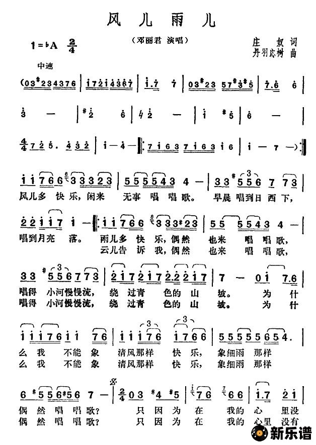 《风儿雨儿》简谱 邓丽君-小叶子制谱