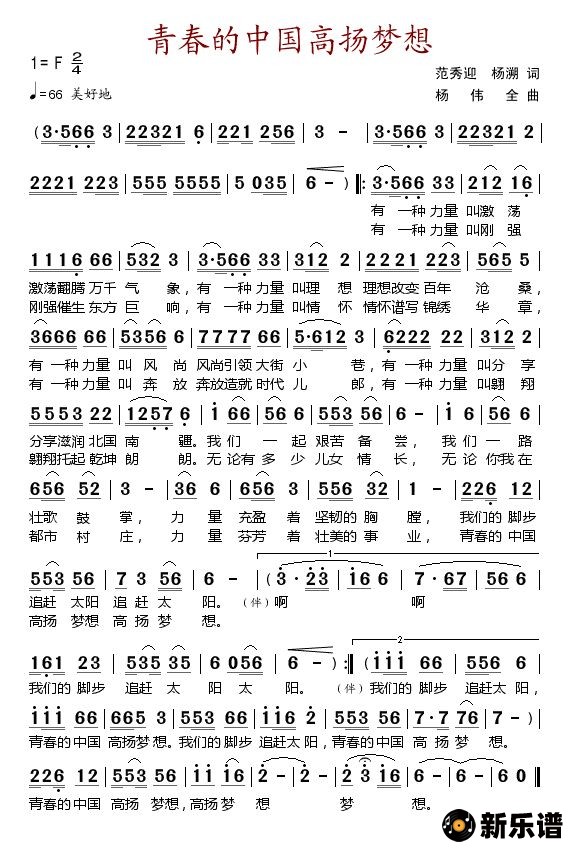 演唱的青春的中国高扬梦想歌词,青春的中国高扬梦想简谱.