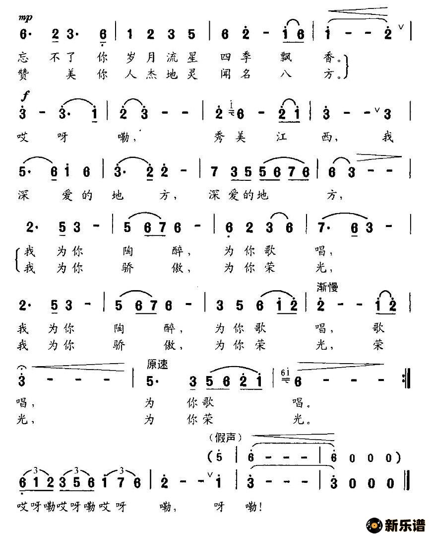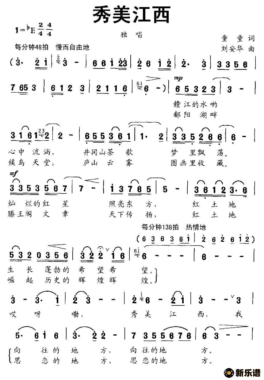演唱的秀美江西歌词,秀美江西简谱.