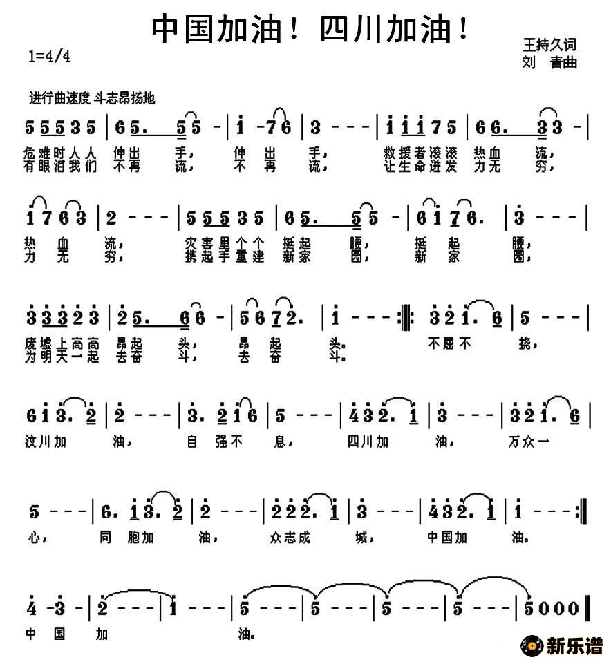 演唱的中国加油!四川加油!歌词,中国加油!四川加油!简谱.