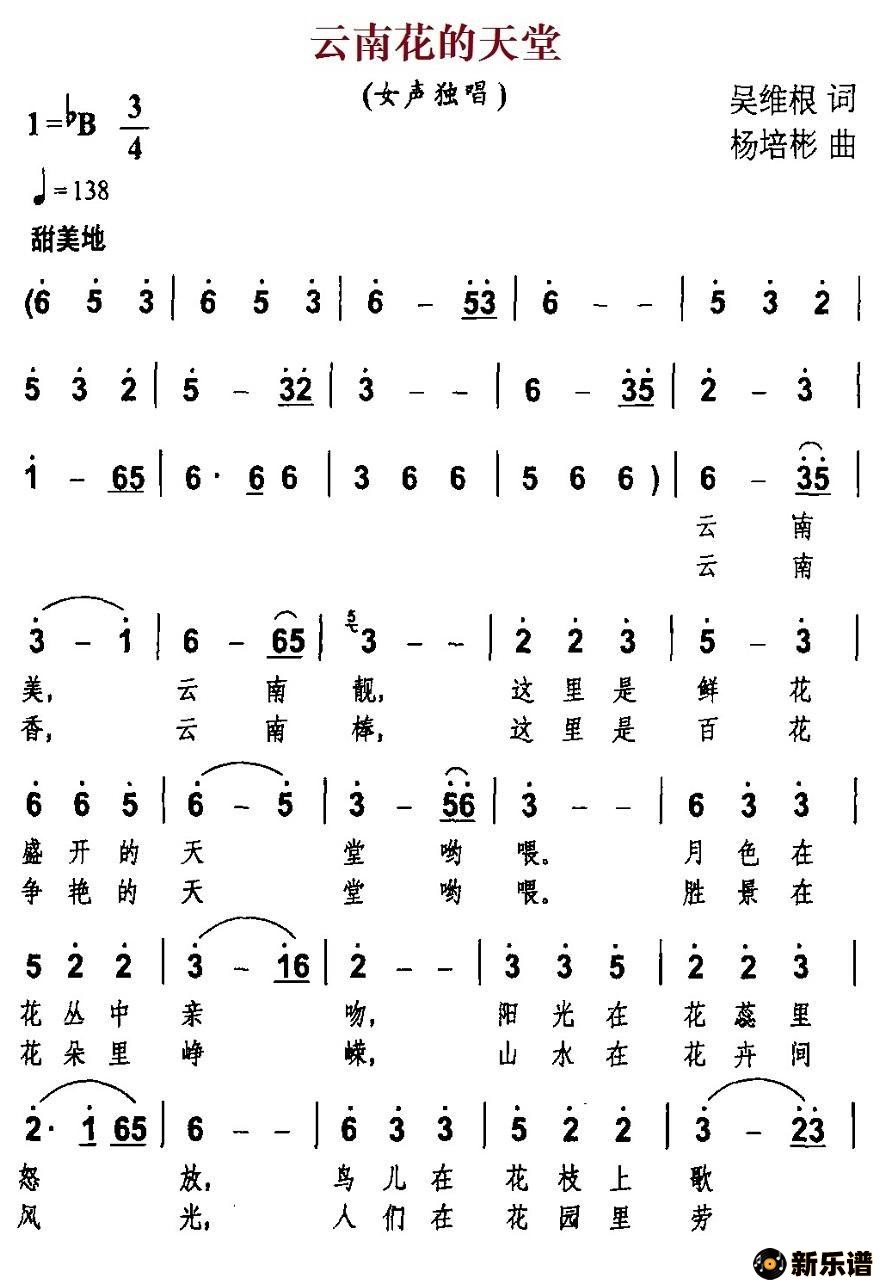 演唱的云南花的天堂歌词,云南花的天堂简谱.