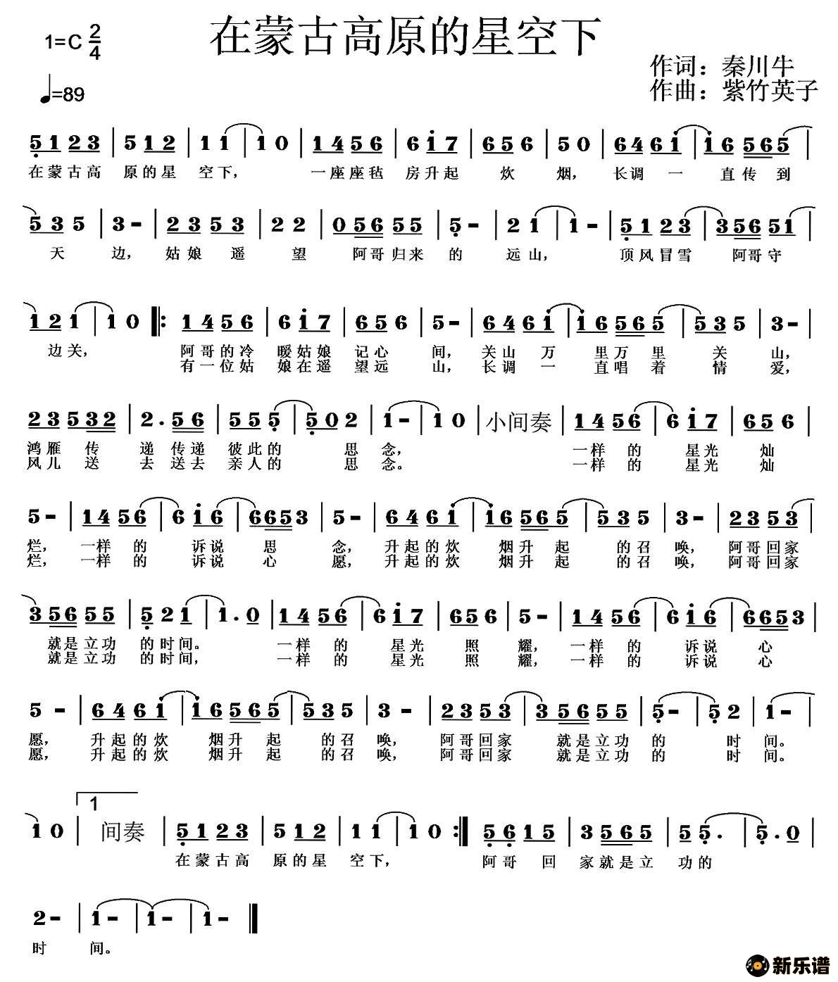 演唱的在蒙古高原的繁星下歌词,在蒙古高原的繁星下简谱.