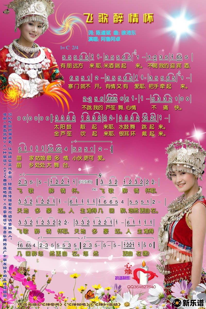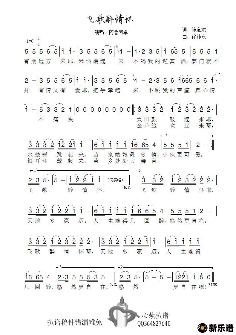 《飞歌醉情怀》简谱 阿鲁阿卓-心烛制谱