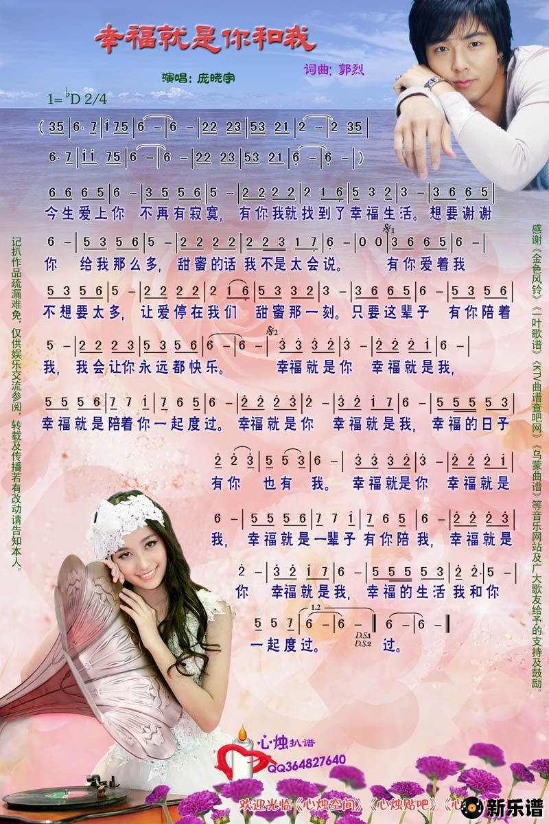 庞晓宇演唱的幸福就是你和我歌词,幸福就是你和我简谱.