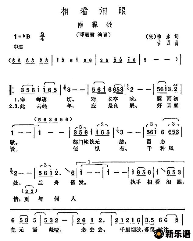 邓丽君演唱的相看泪眼歌词,相看泪眼简谱.