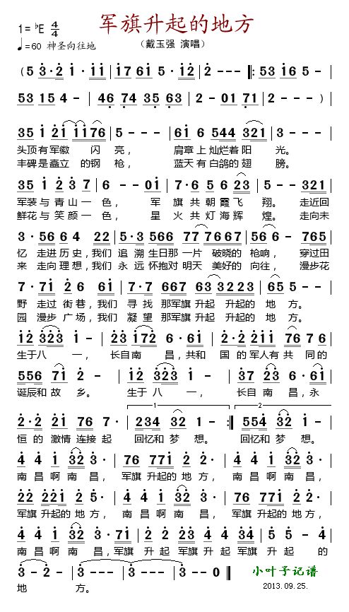 《军旗升起的地方》简谱 戴玉强-小叶子制谱