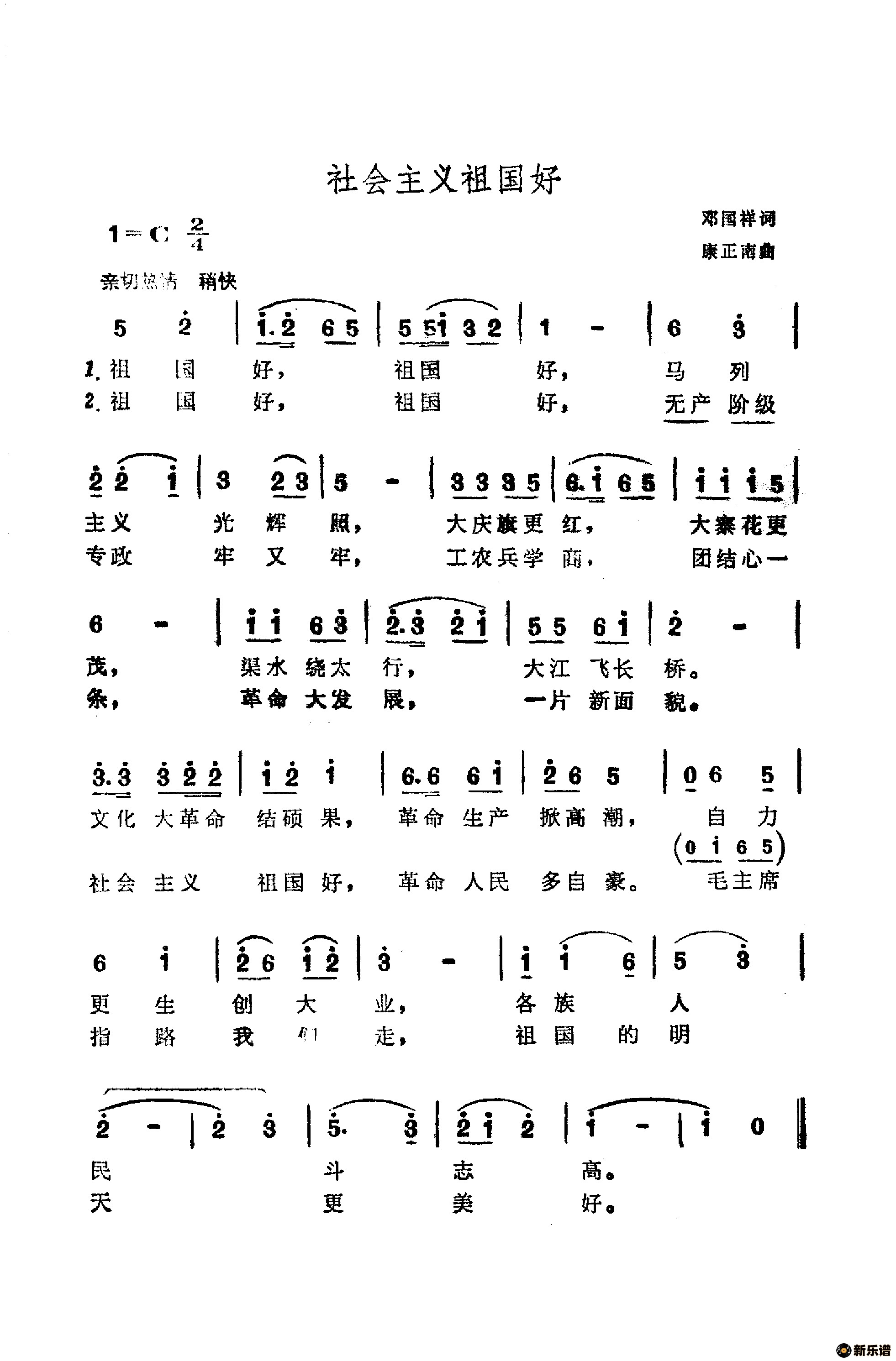 安徽省文工团演唱的社会主义祖国好歌词,社会主义祖国好简谱.