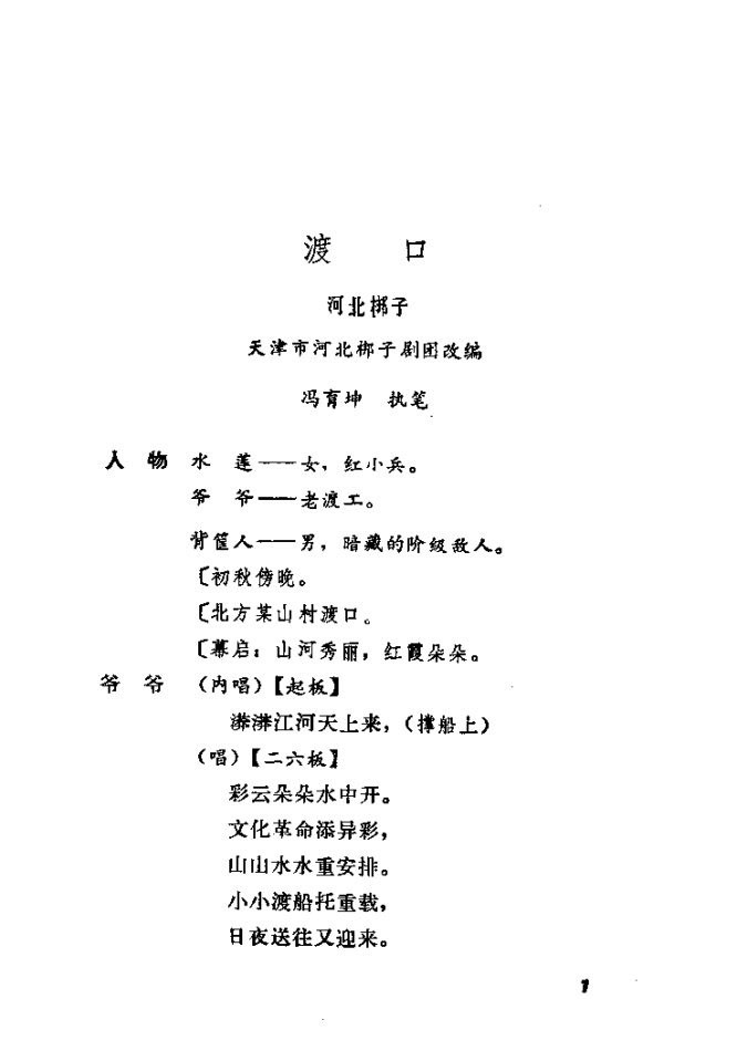 刘俊英、阎建国、王树森演唱的渡口(河北梆子全剧)歌词,渡口(河北梆子全剧)简谱.