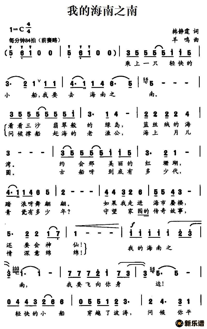 演唱的我的海南之南歌词,我的海南之南简谱.
