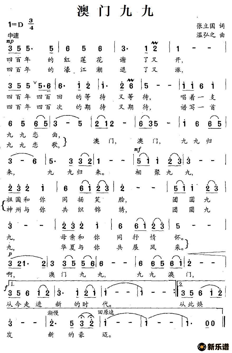澳门九九/ 相关曲谱