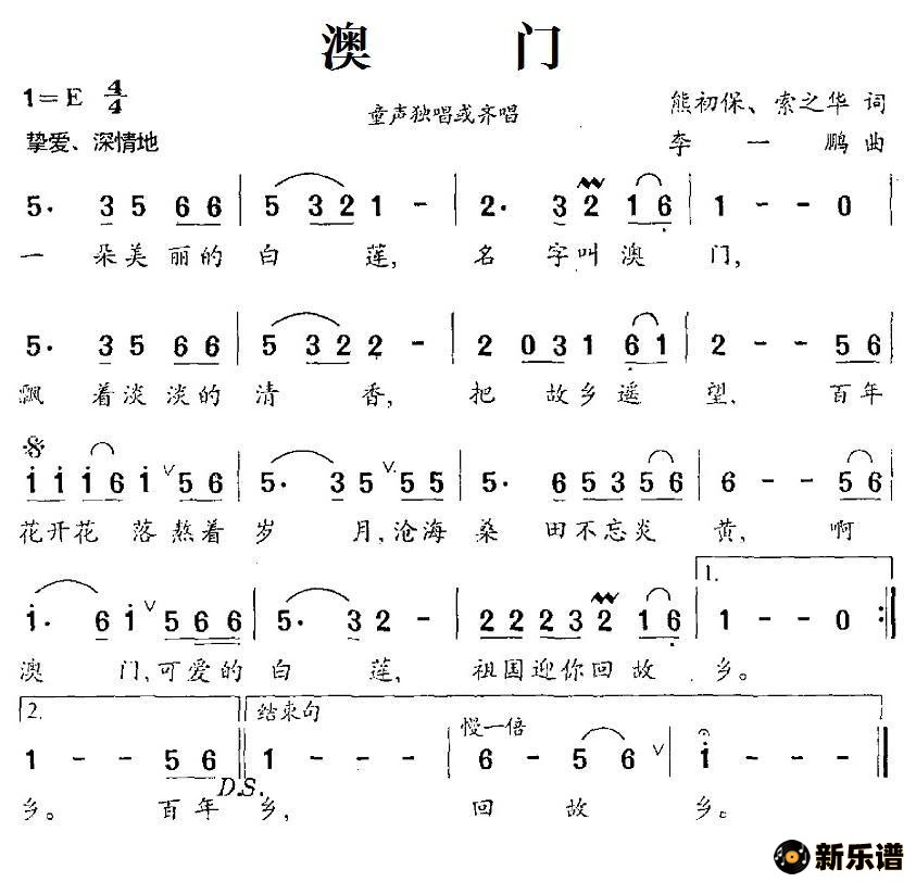 七子之歌——澳门(《澳门岁月》主题曲)简谱