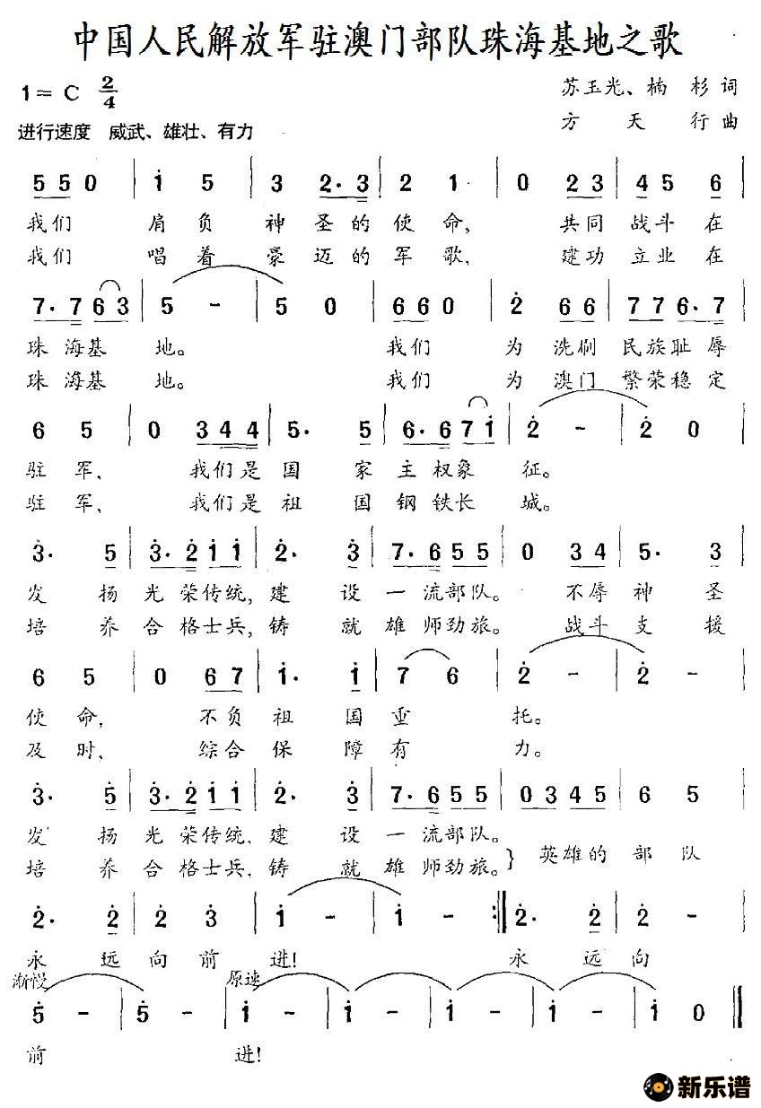 > 中国人名解放军驻澳门部队珠海基地之歌简谱